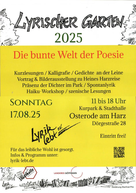 Außerdem in Stichworten: Gedichte an der Leine, kalligrafisch umgesetzte Lyrik, Haiku-Werkstatt, Bilderausstellung zu Heines Harzreise, Worthülsen, literarische Vereinigungen und Lyrik publizierende Verlage …